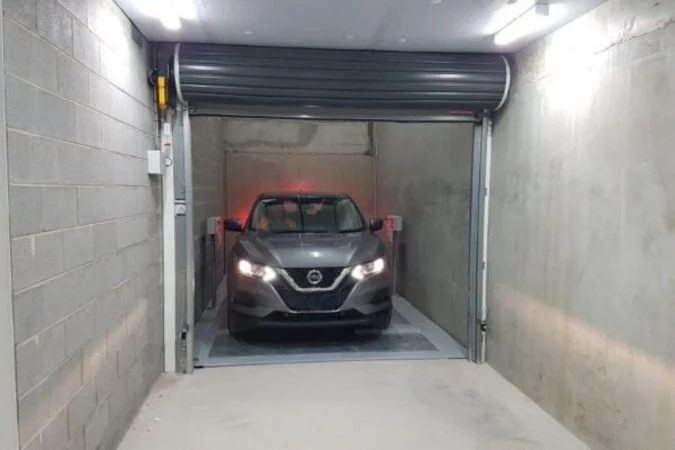 The Totalrex parking lift series from OMER allows a person to remain on board while the lift is in operation.