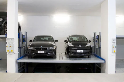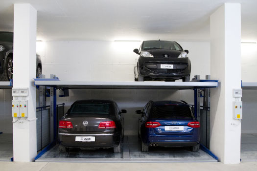 OMER’s Double Spacer is a versatile and robust independent car stacker. This parking garage lifting system allows the parking and storage of up to four cars within the same space as two traditional parking spots, while still maintaining access to all vehicles.
