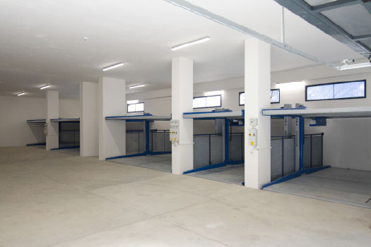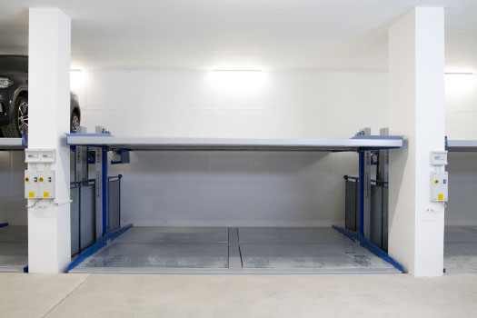The system requires a pit that allows the removal of the cars on the lower platform without moving the ones parked on the upper platform.